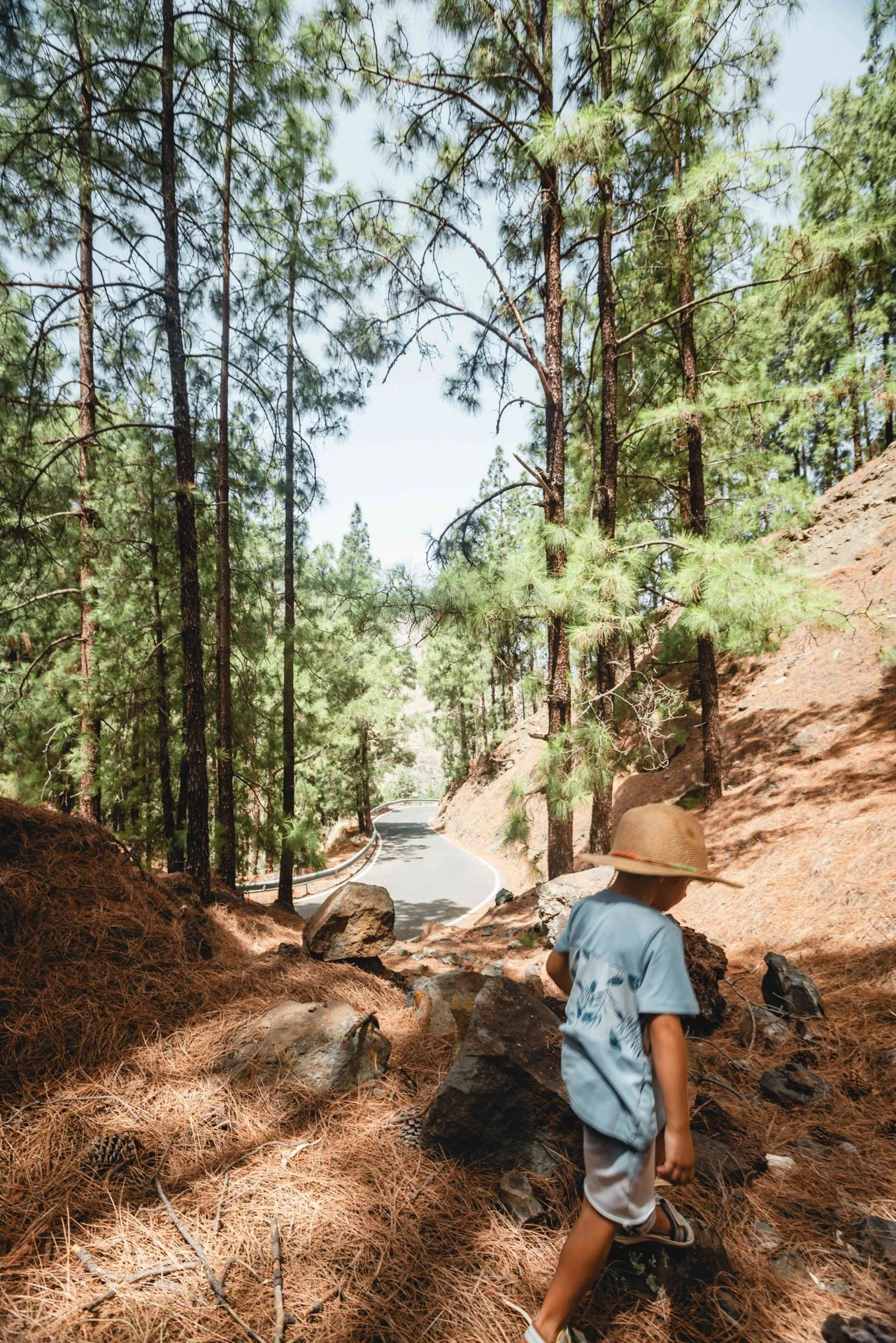 We stayed in Gáldar in the north of Gran Canaria this summer for a few days, and since we are always attracted to a forest in Canary Islands we decided to go on a hike. It was so hot though it was way too much to enjoy the walk, the temperatures were around 40ºC, the light breeze of air was warm and there were other forest areas at the same time on the island that were closed off because of danger of fires, we were safe where we were but we settled for a picnic in the shade and enjoyed the trees.